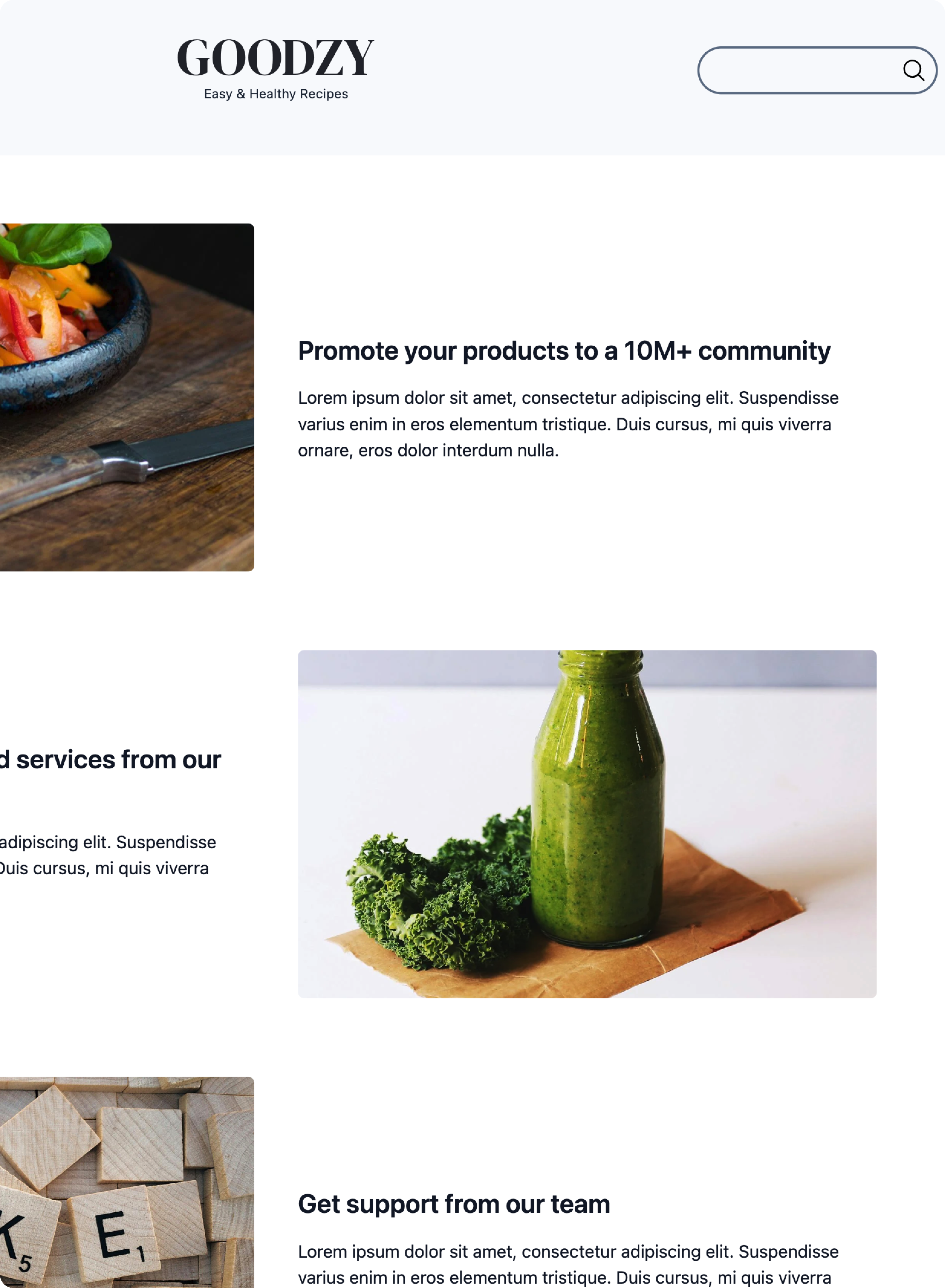 The website in a classical style and feature galleries to showcase pictures of recipes. In addition, there is a detailed ingredient lists for each recipe provided on the website.